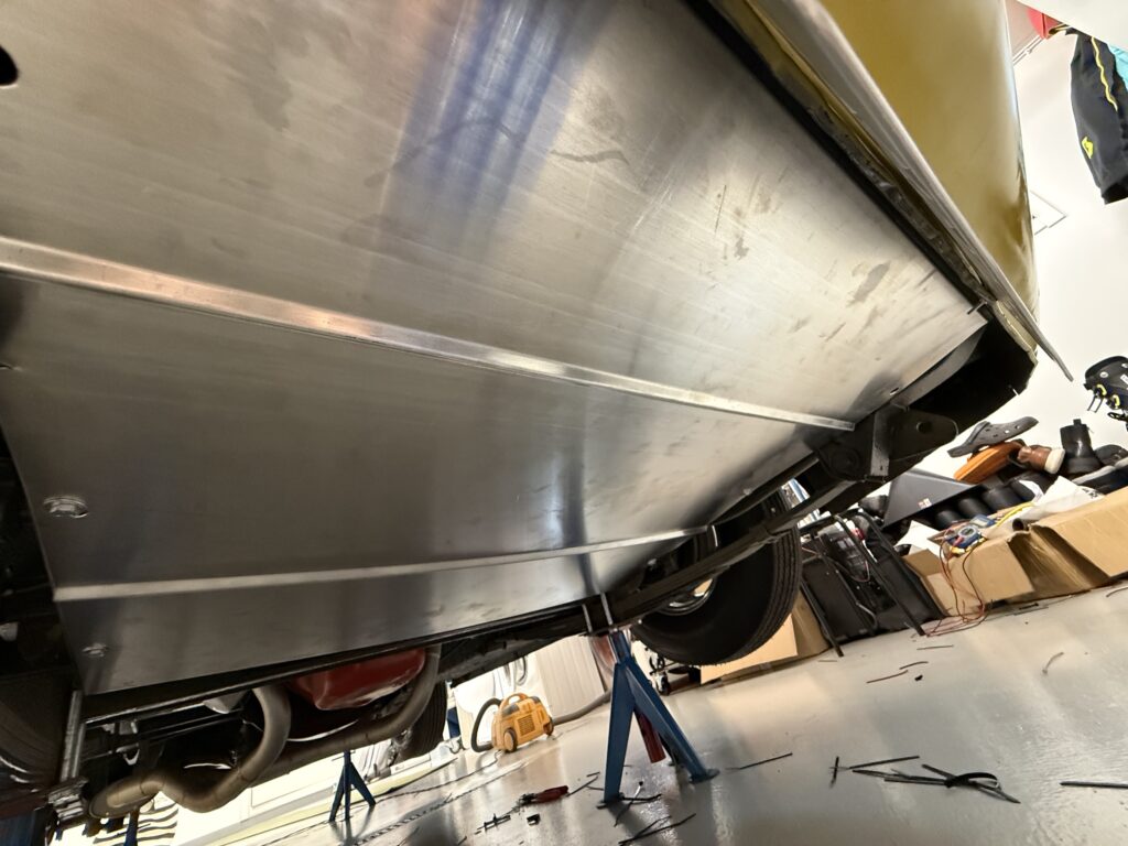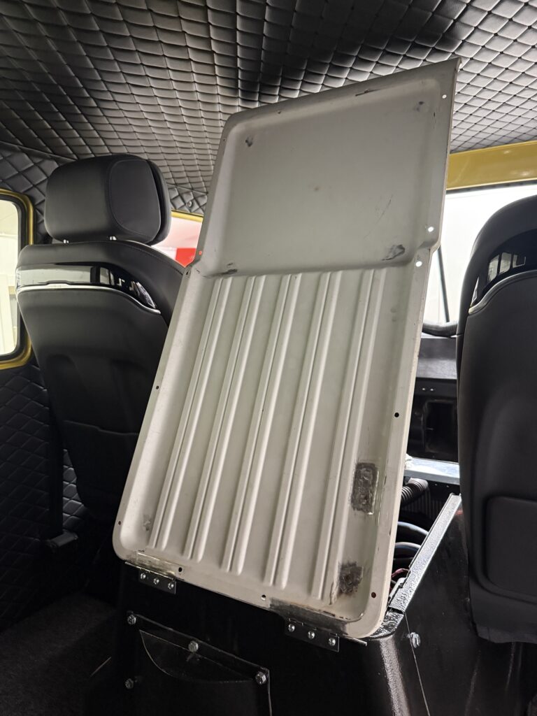 Built a new battery box that is lowered into the floor instead of the original battery box that sits on the floor behind the driver’s seat.