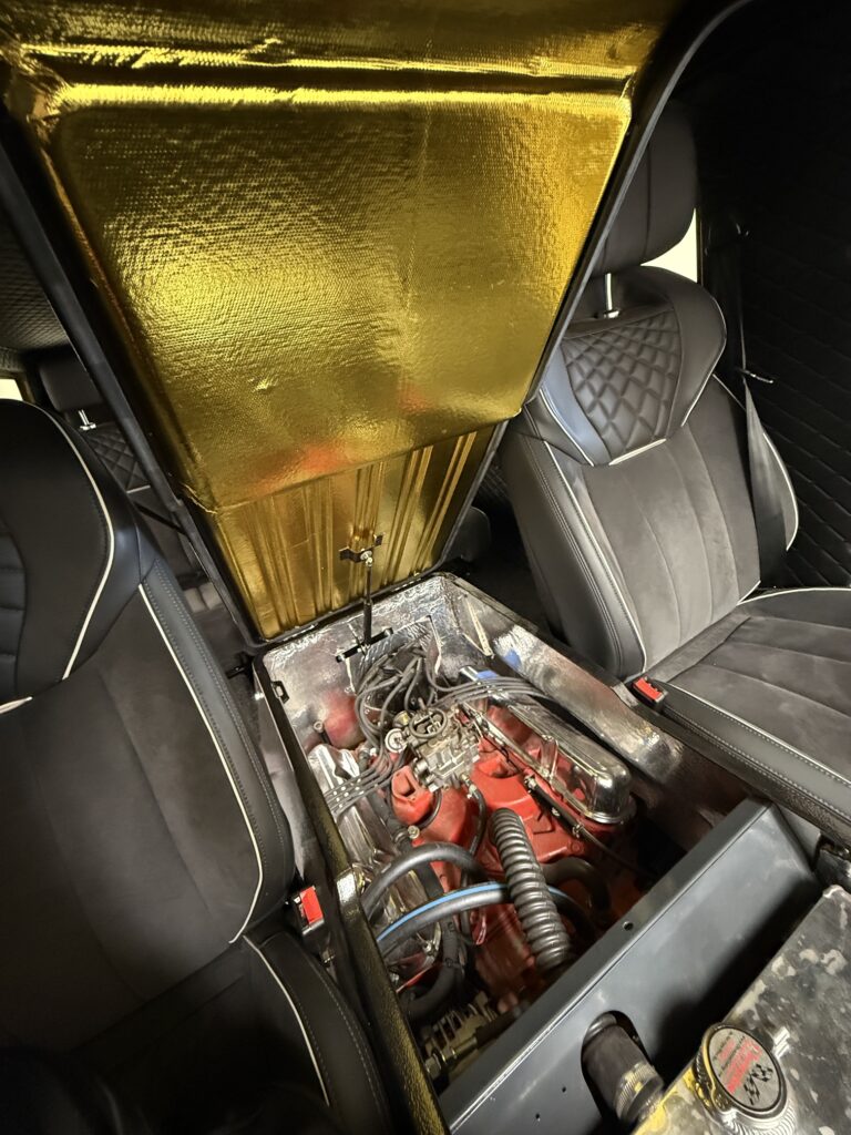 Now it’s starting to look like something. Got the generator mount and tensioner done today. Installed the hoses for the heating package, some vacuum hoses. Got some heat insulation that I installed before I installed the radiator with electric fan. Bought a 200 Amp generator so there is some power for future audio builds. I’ll let the pictures speak for themselves.